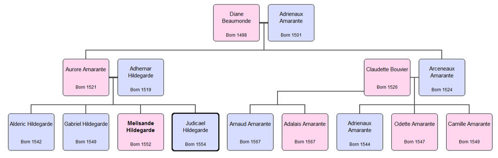 Unfortunately, Melisande's brothers never came back from war. House Hildegarde lost all their righteous male heirs, leaving Melisande alone in a House filled with shadows, memories and ingrained misery. Lord Adhémar shuttered himself in his library, barely seeing nor speaking with anyone. As for Lady Aurore, she bursted into hysterical grief. For the sake of the House, Melisande gave orders and rested assured that their parents would be given time to mourn, withdrawing from the public scene.